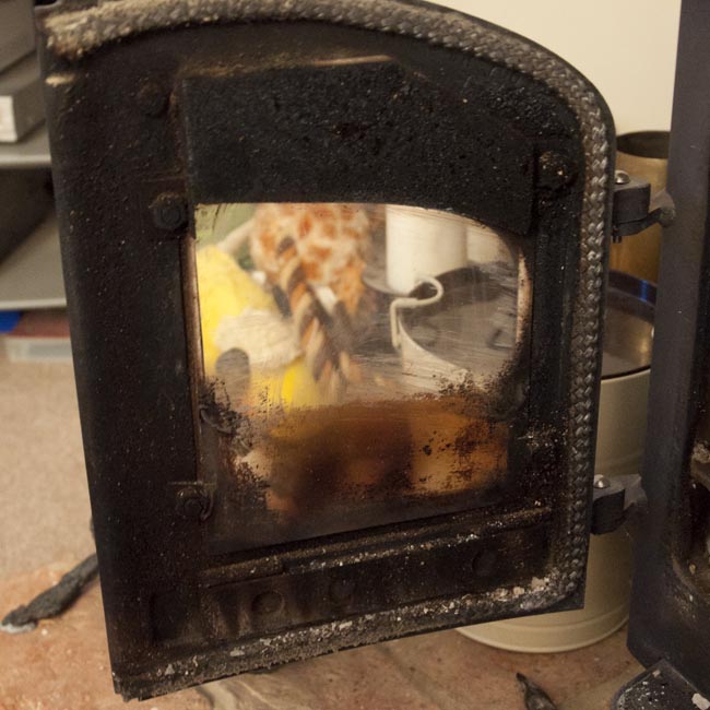 The answer is as easy as could be. No solvents or volatile chemicals, very little effort, and you have all the things you need already. Strange as it may seem, you need some newspaper, some ash, some tap water, and a very little elbow grease. And a wood-burning or multi-fuel stove, of course, but if you haven’t got one, you probably haven’t bothered to read this far.