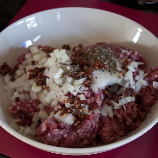 - Four or five sun-dried tomatoes, sliced up as fine as you can