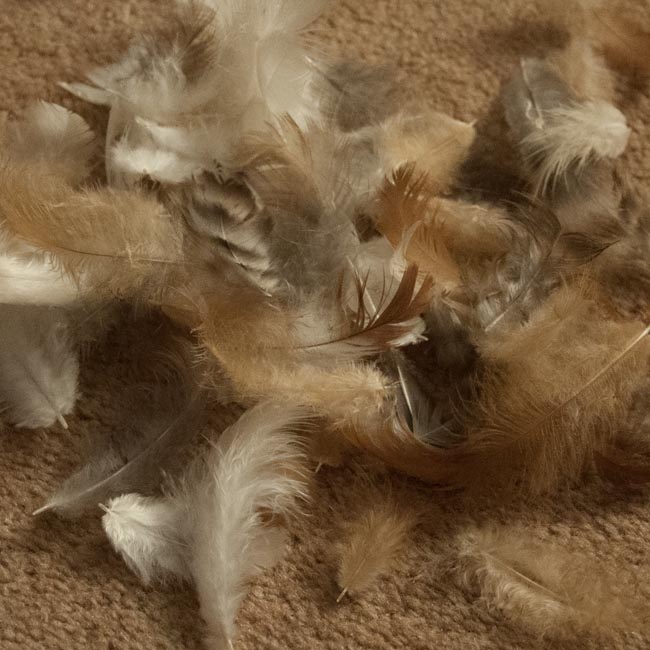 Chicken feathers Published December 11, 2012 at 650 × 650 in Get Stuffed – filled glass bauble decorations – Blog Advent (11)
