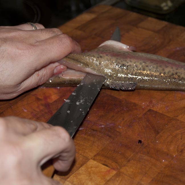 Continuing to cut the fillet Published December 16, 2012 at 650 × 650 in Fillets Of Fish – how to gut, clean, and fillet a trout – Blog Advent (16)