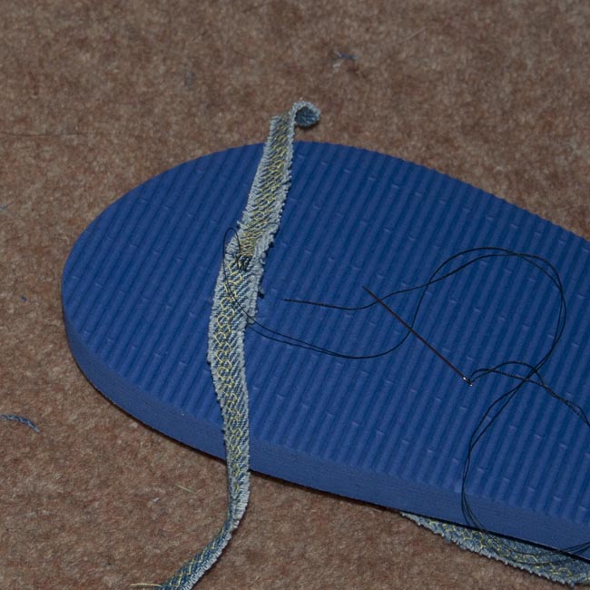Fixing toe strap (2) Published June 23, 2013 at 650 × 650 in In A Flap – flip-flop denim fabric strap upcycle