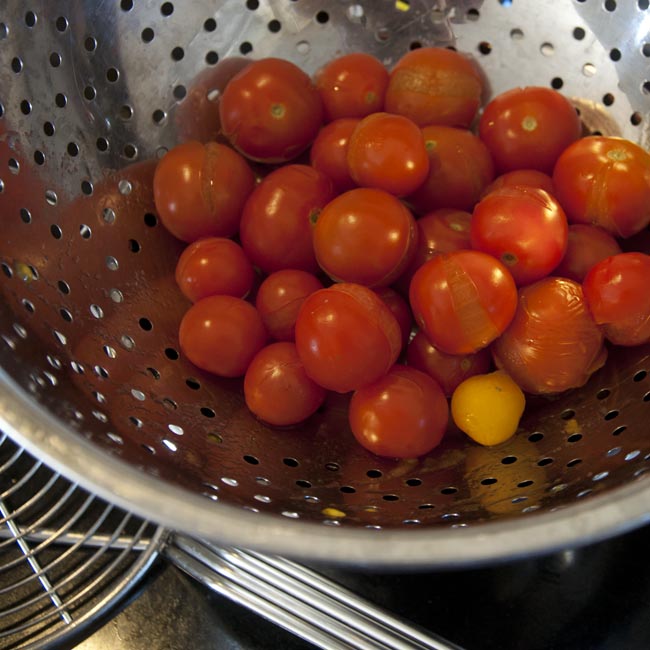 With skins split, draining Published October 8, 2013 at 650 × 650 in Taming the Tomato Glut – Part 4: fresh tomato passata