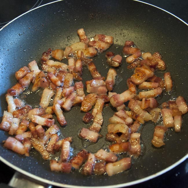 Fried bacon lardons Published January 9, 2014 at 650 × 650 in Pain de Savoie, from Paul Hollywood’s ‘Bread’ – Cooking the Books, week 2
