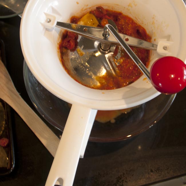 Pass through a mouli Published January 11, 2014 at 650 × 650 in Taming the Tomato Glut – Part 5: roasted tomato sauce