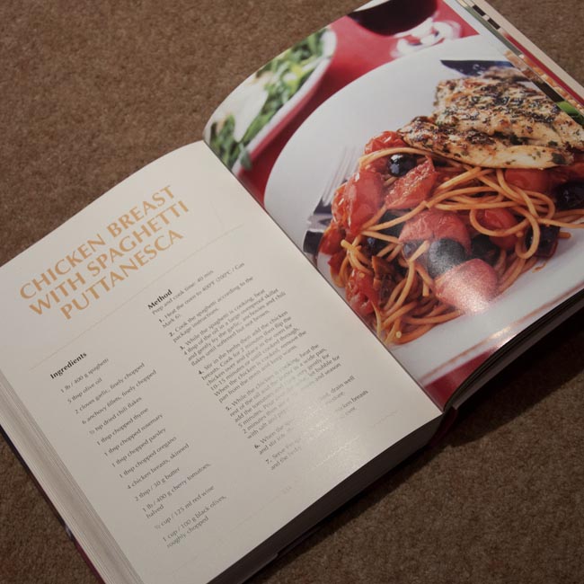 Inside page view Published January 23, 2014 at 650 × 650 in Chicken Breast with Spaghetti Puttanesca, from ‘Food Lovers: Chicken’ – Cooking the Books, week 4