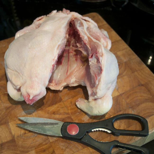 Cut from parson’s nose towards neck end Published May 3, 2014 at 650 × 650 in Basic Butchery – how to spatchcock a chicken (or any other poultry!)