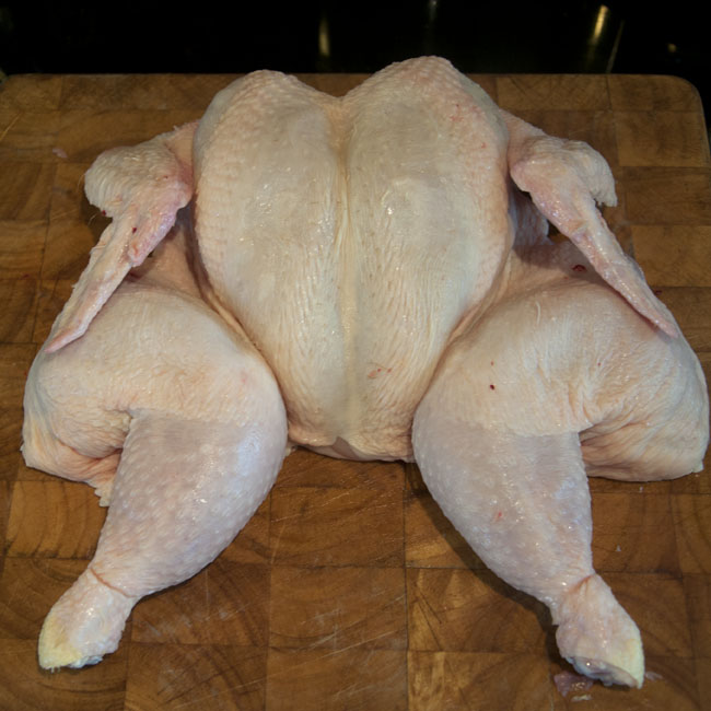 Flatten breast area Published May 3, 2014 at 650 × 650 in Basic Butchery – how to spatchcock a chicken (or any other poultry!)