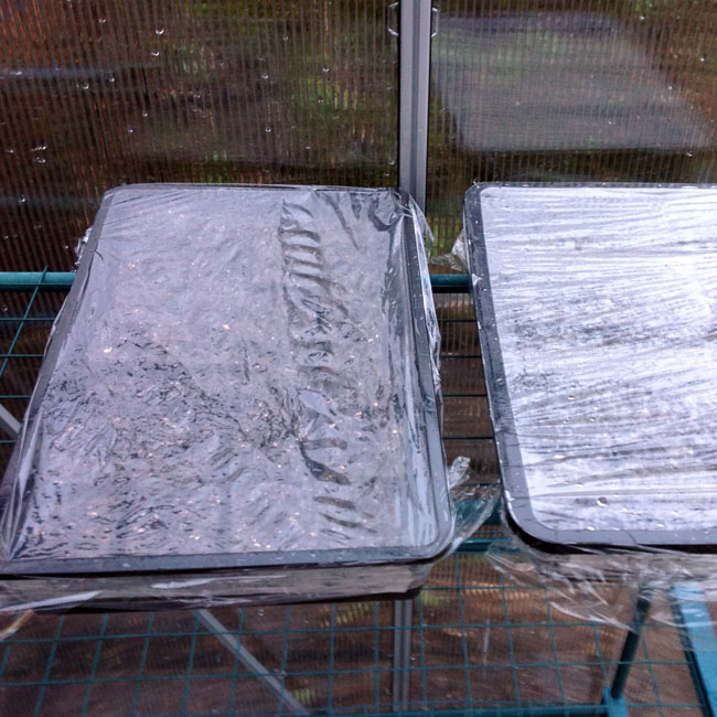 Covered seed trays in greenhouse Published February 28, 2015 at 650 × 650 in Blocking Up – experimenting with peat-free soil blocks