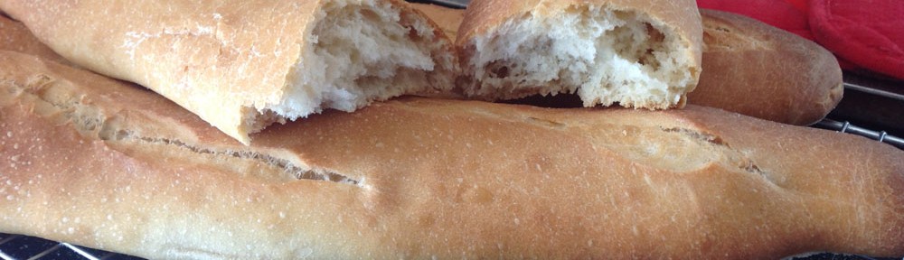 A year or more ago, I had a hankering for home-made baguette. Initial experiments and trials with recipes in my cookbook library were all rather disappointing – they produced baguette-shaped loaves, but lacked not just the flavour, but also the crumb and the chewy, toothsome, slightly elastic crust of a genuine French loaf. French cookbooks, of course, were no use whatsoever – no French housewife in her right mind bakes her own bread, when there’s still a traditional ‘boulangerie’ in almost every village and on almost every street corner.