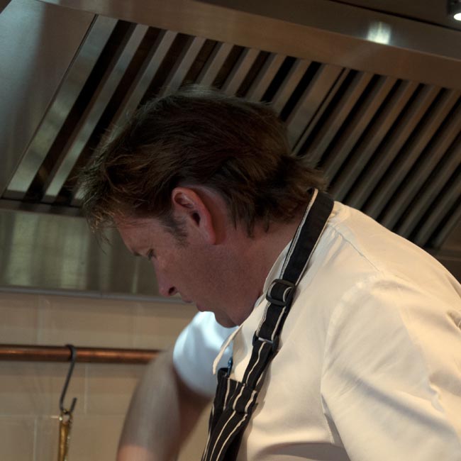 Our day at Food at 52  with James Martin was in two halves.  Our participation was called for in the morning as we were pressed into service as a rag-tag team of commis chefs in the preparation of the first three dishes – which made up our menu for lunch.  James guided and instructed and was only occasionally scathing of our efforts!