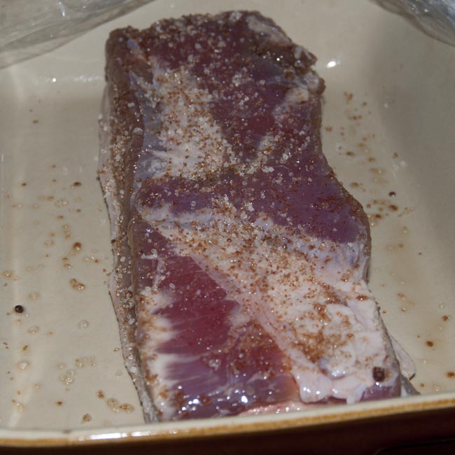 Once you’re happy, pre-heat your oven to 220 and, once it’s up to temperature, slide the tin into the oven and bake for half an hour. It should come out a lovely rich mid-brown colour on top.