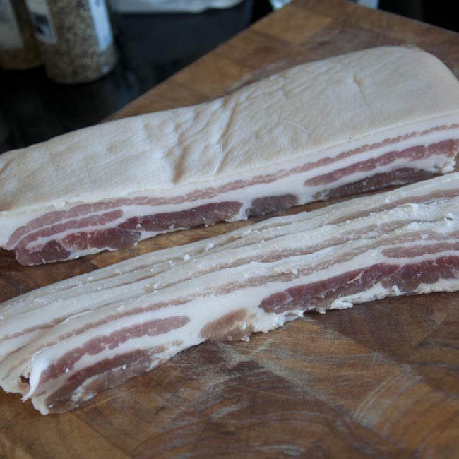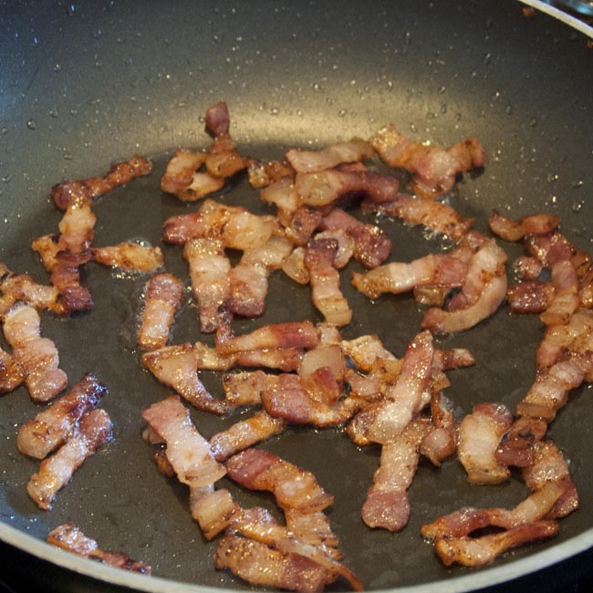 - 150g of home-cured smoked streaky bacon, rind removed, and cut into lardons